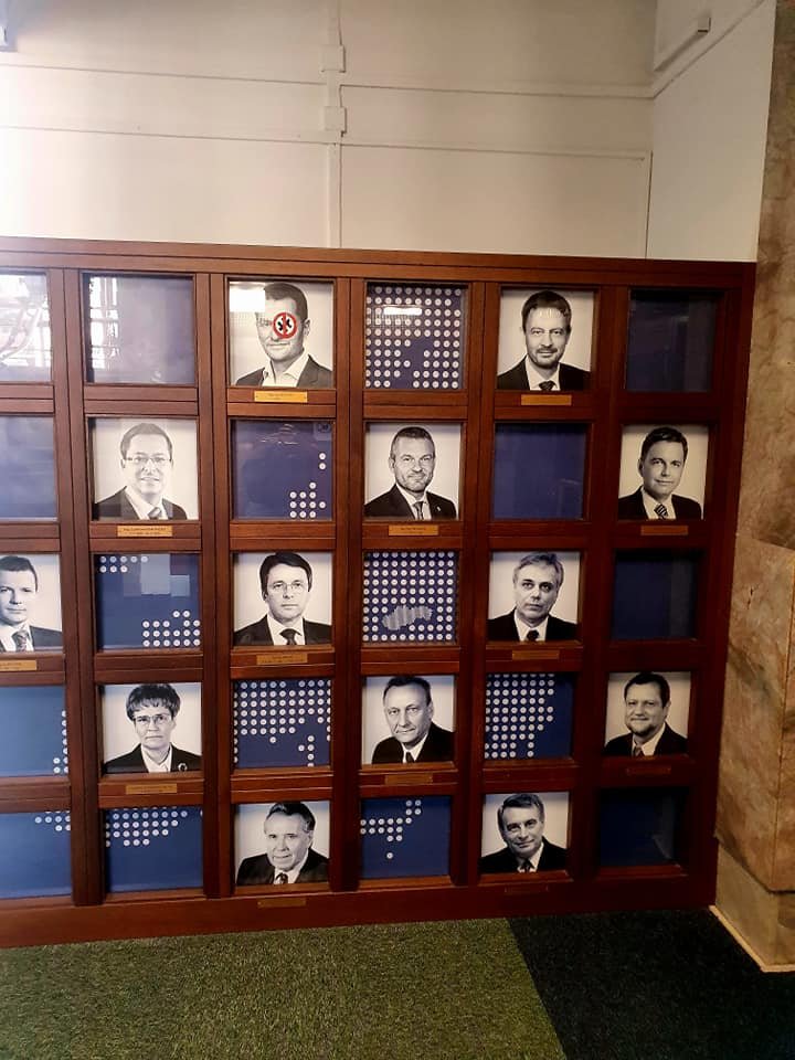 Galéria k článku Na ministerstve financií mali RUŠNO: Na fotke Matoviča sa objavila protifašistická NÁLEPKA!