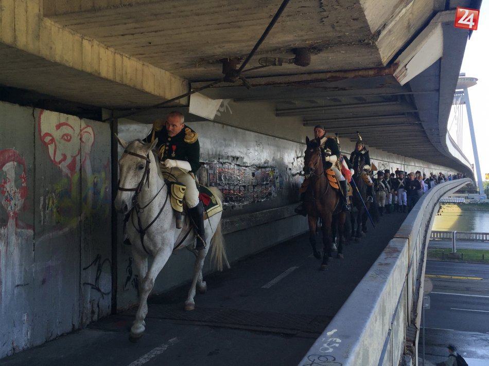 Galéria k článku OBRAZOM: Ozbrojené vojská pochodovali cez most SNP. Bratislava sa opäť bránila Napoleonovi