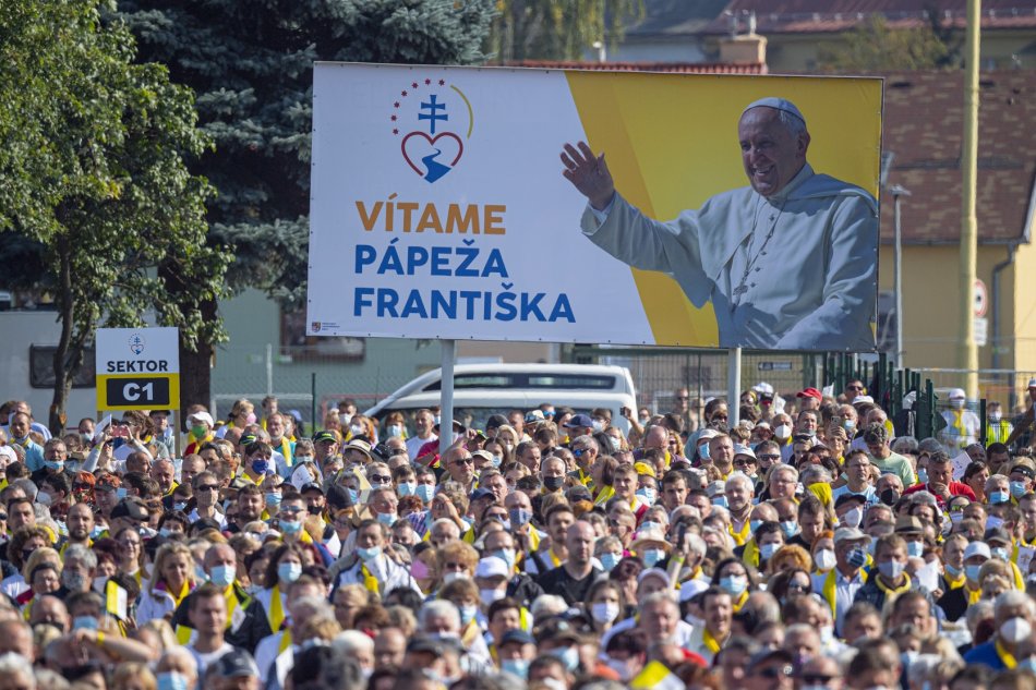 Galéria k článku Svätý Otec žehnal Prešovčanom z ikonického papamobilu. Prevetrá ho aj v Košiciach, VIDEO