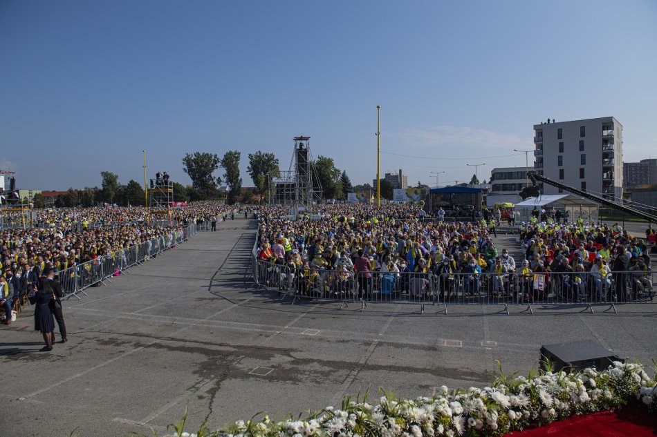 Galéria k článku Svätý Otec žehnal Prešovčanom z ikonického papamobilu. Prevetrá ho aj v Košiciach, VIDEO