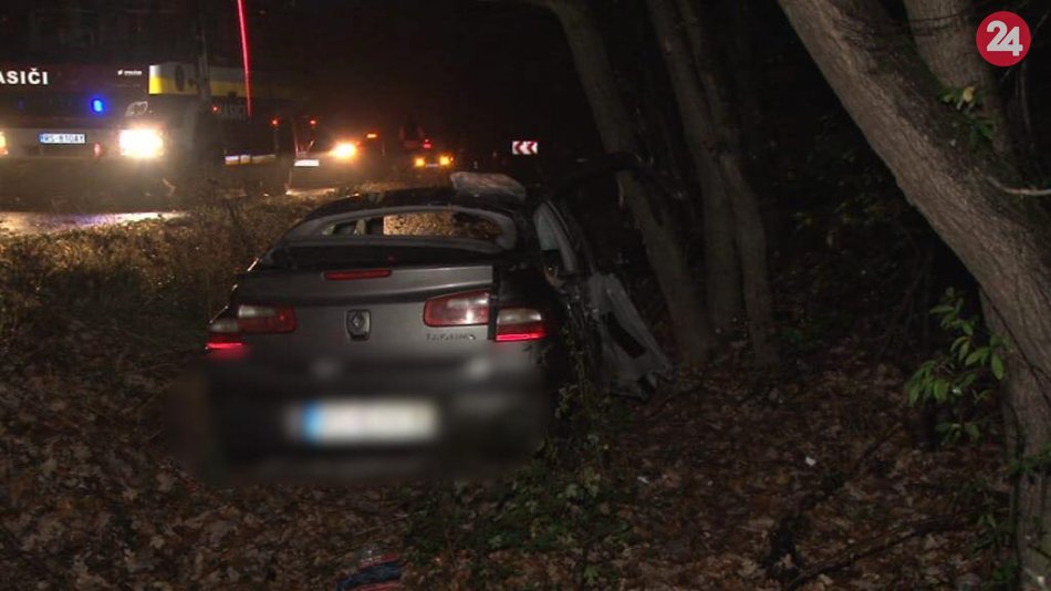 Galéria k článku Nebezpečná nehoda: Auto dostalo šmyk, zastavil ho až náraz do stromu