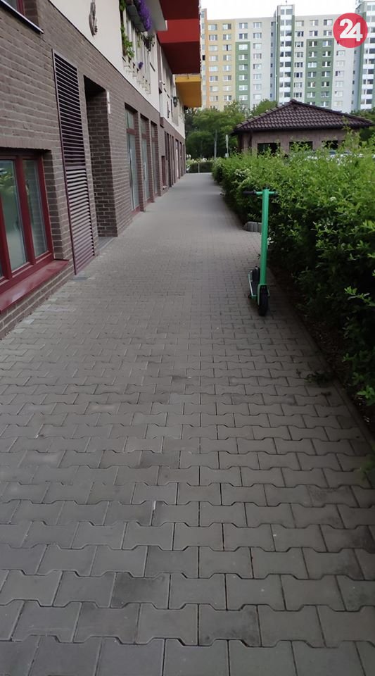 Galéria k článku Pohodené na chodníkoch či zdemolované: TAKTO ktosi zaparkoval zelenú kolobežku v Bratislave!
