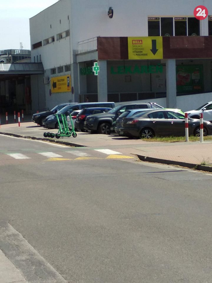 Galéria k článku Pohodené na chodníkoch či zdemolované: TAKTO ktosi zaparkoval zelenú kolobežku v Bratislave!