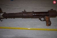 Objavili guľomet zamurovaný v komíne