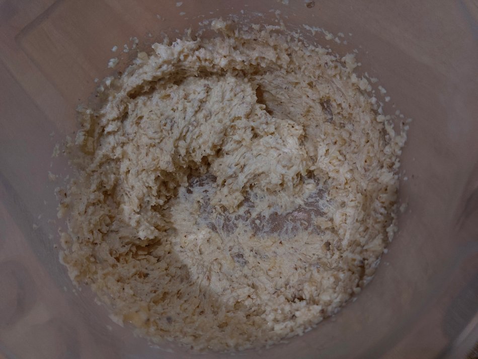 K plnke si vyšľaháme maslo s práškovým cukrom, pridáme mleté orechy a po lyžiciach vychladnutý puding
