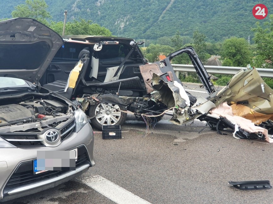 Galéria k článku Pri Slavci sa zrazilo šesť vozidiel: Jedna osoba zranená, FOTO z miesta