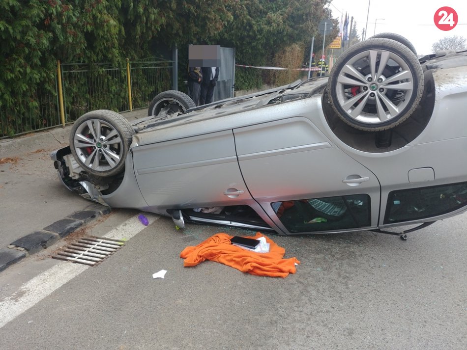 Galéria k článku Dopravná nehoda v Rožňave: Auto po náraze na streche