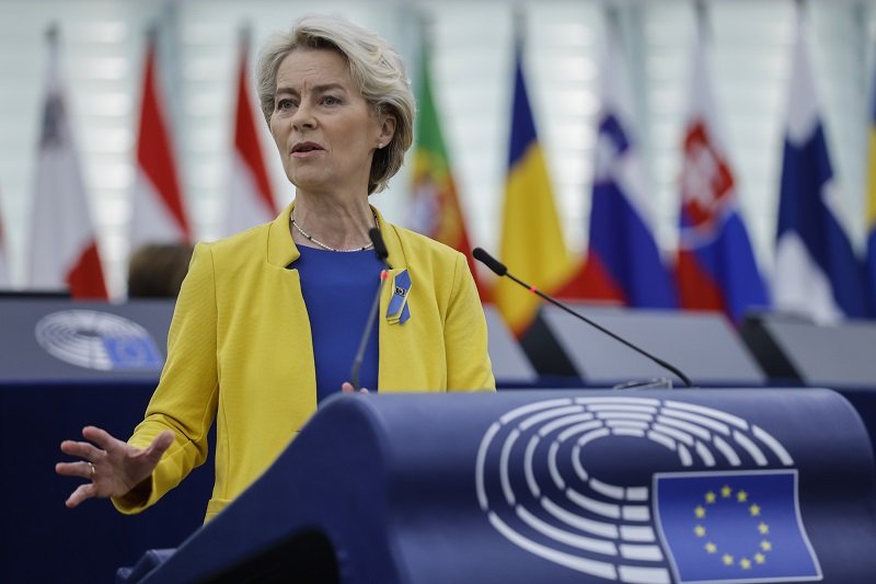 Galéria k článku FOTO: Olena Zelenská v europarlamente: Von der Leyenová sa NAHODILA do farieb Ukrajiny