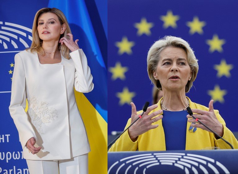 Galéria k článku FOTO: Olena Zelenská v europarlamente: Von der Leyenová sa NAHODILA do farieb Ukrajiny