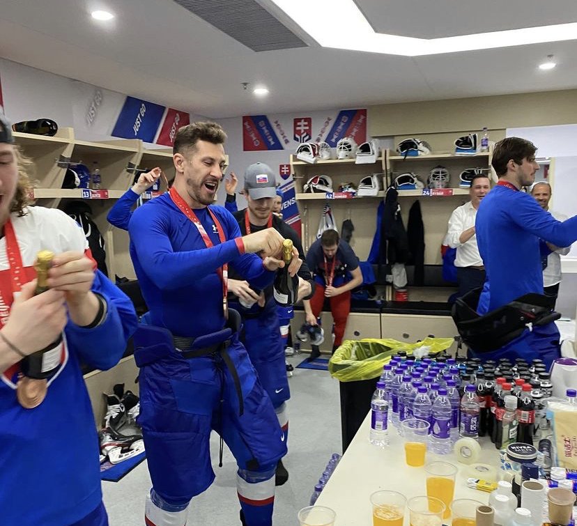 Galéria k článku TAKTO sa oslavuje BRONZ: Mokrý Ramsay a Slafkovský to ROZTOČIL aj v šatni! FOTO