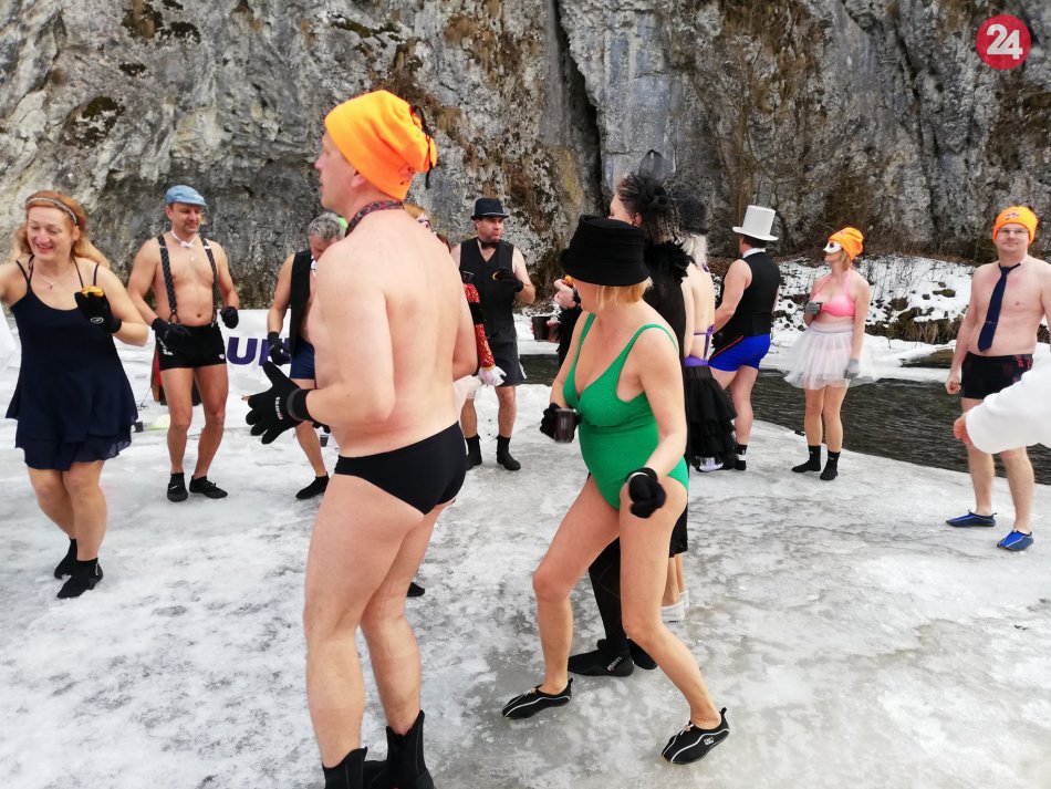 Galéria k článku Tanec, róby a ľadový Hornád: Otužilci zo Spišskej a okolia plesali, FOTO a VIDEO