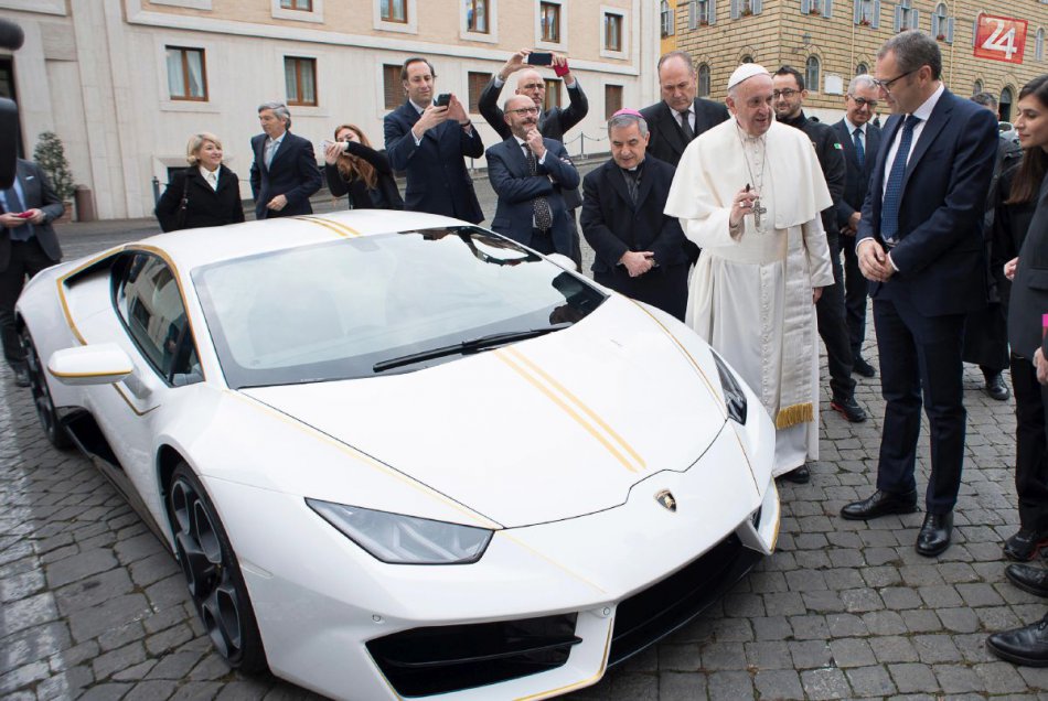 Galéria Pápež František dostal luxusné Lamborghini, podpísané auto vydražia