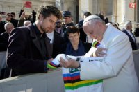 Peter Sagan sa stretol s pápežom Františkom, daroval mu bicykel