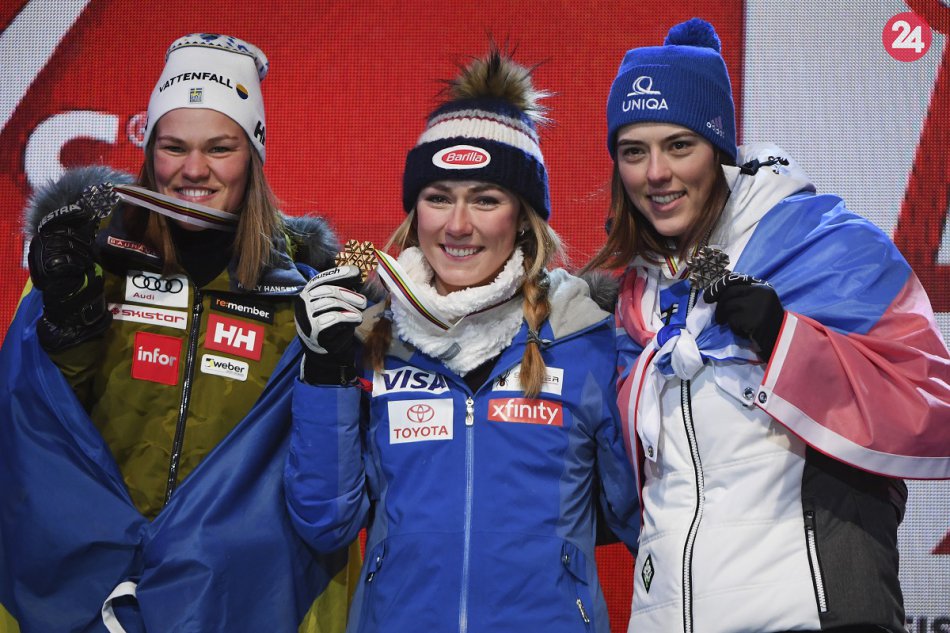 Galéria k článku Petra Vlhová na stupni víťazov: Zo slalomu vo švédskom Aare si odnáša bronz, FOTO