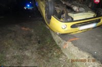 Po šmyku skončila vodička s autom na streche