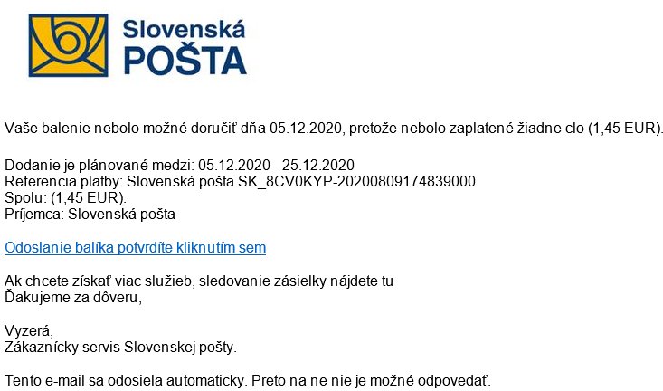 Galéria k článku Slovenská pošta opäť upozorňuje na podvodné správy: Žiadne COLNÉ poplatky neplaťte!