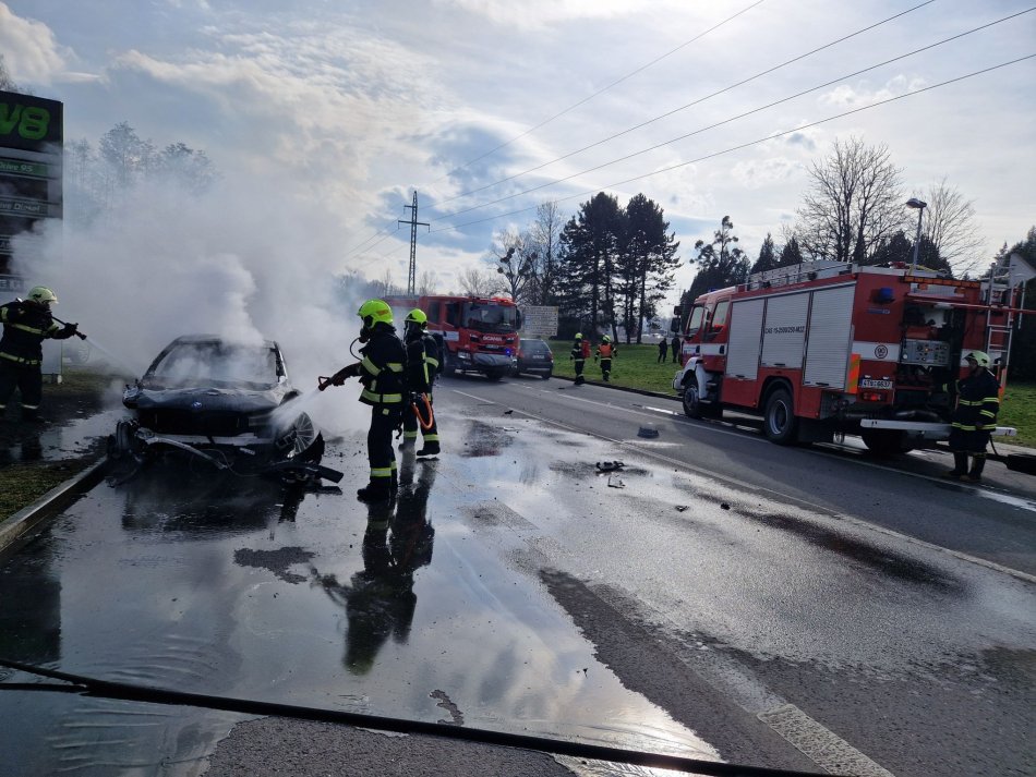 Galéria Policajné BMW po nehode pohltili plamene