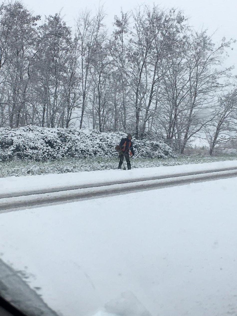 Galéria k článku FOTO: Z týchto cestárov sa smeje celý internet: Vybrali sa KOSIŤ trávu pod snehom!