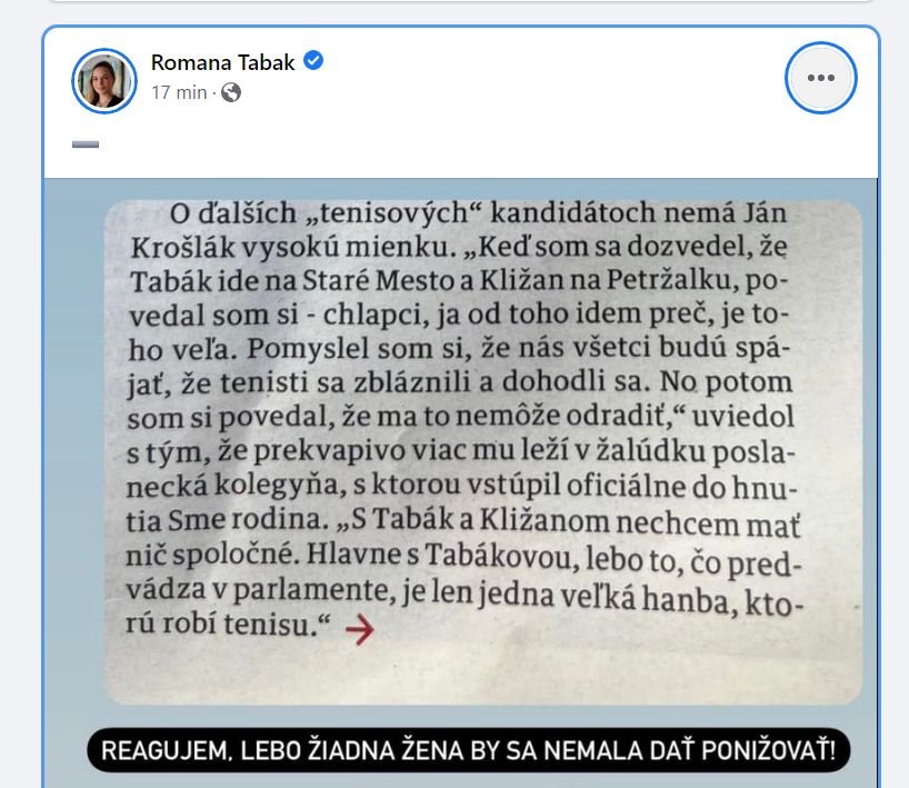 Galéria k článku URAZENÁ Tabák poslancovi Krošlákovi: Janko, ty PRIMITÍV! A potom status zmazala... FOTO