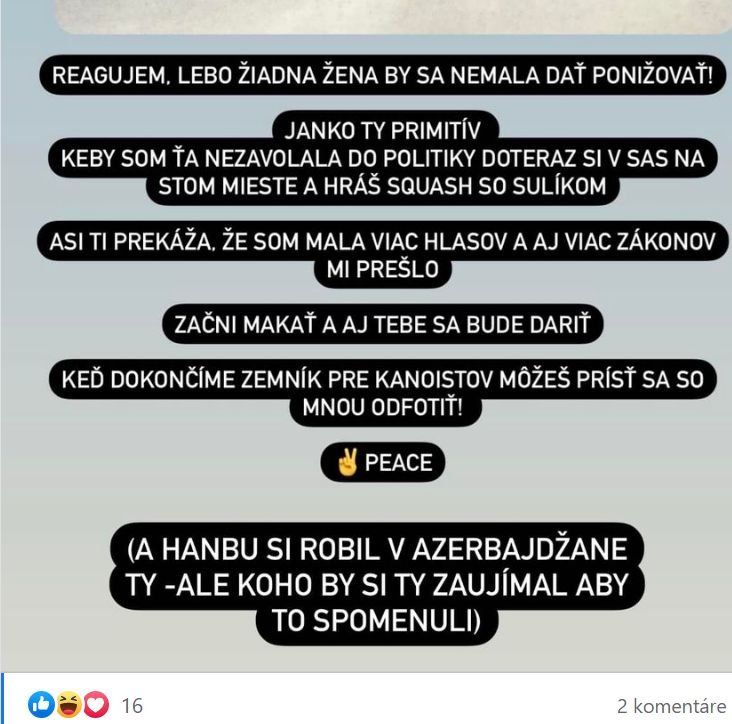Galéria k článku URAZENÁ Tabák poslancovi Krošlákovi: Janko, ty PRIMITÍV! A potom status zmazala... FOTO