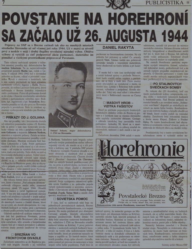 Článok Povstanie na Horehroní z 24.8. 1995 Archív Múzea SNP