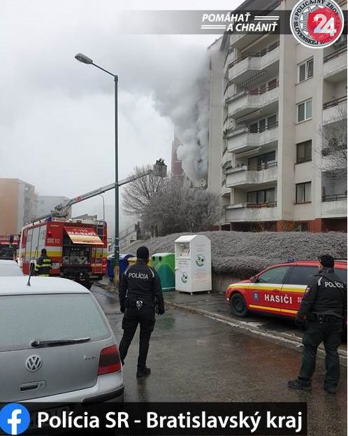Galéria k článku Výbuch plynu v Bratislave: Pri požiari zasahuje 25 hasičov, VIDEO