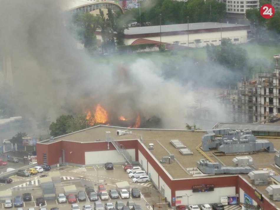 Galéria k článku Na stavenisku vedľa obchodného centra v Novom Meste horelo + FOTO, VIDEO