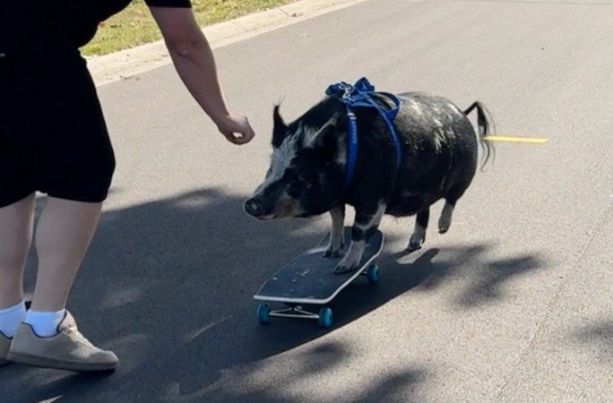 Galéria k článku Nič ROZKOŠNEJŠIE dnes neuvidíte: PRASIATKO sa naučilo jazdiť na skateboarde! FOTO