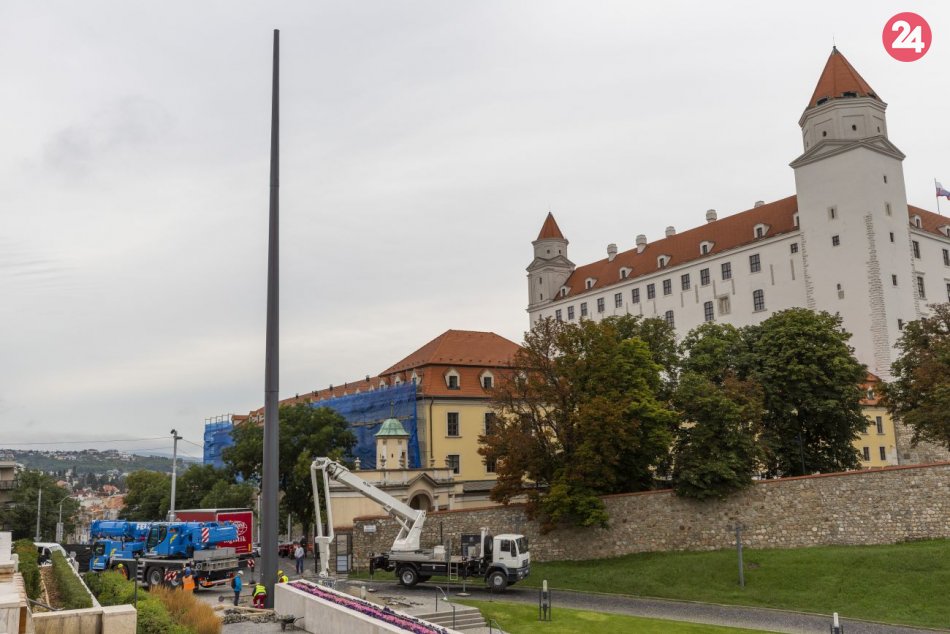 Galéria Pred budovou parlamentu vztýčili sporný stožiar