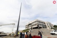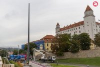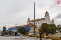 Pred budovou parlamentu vztýčili sporný stožiar