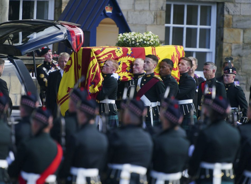 Galéria k článku Silné zábery z prevozu rakvy s Alžbetou II.: Rozlúčiť sa prišli tisícky ľudí, FOTO