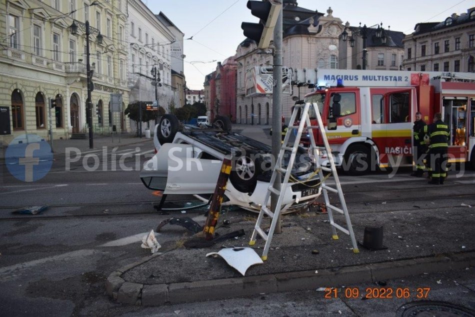 Galéria k článku HROZIVÉ zábery z nehody v centre Bratislavy: Vodič NAPÁLIL priamo do stĺpa, FOTO