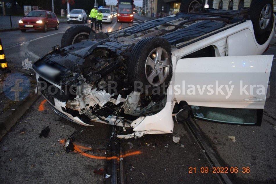 Galéria k článku HROZIVÉ zábery z nehody v centre Bratislavy: Vodič NAPÁLIL priamo do stĺpa, FOTO
