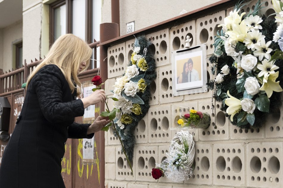 Galéria k článku Prezidentka si uctila pamiatku Kuciaka a jeho snúbenice: Pred dom, v ktorom boli zavraždení, položila kvety