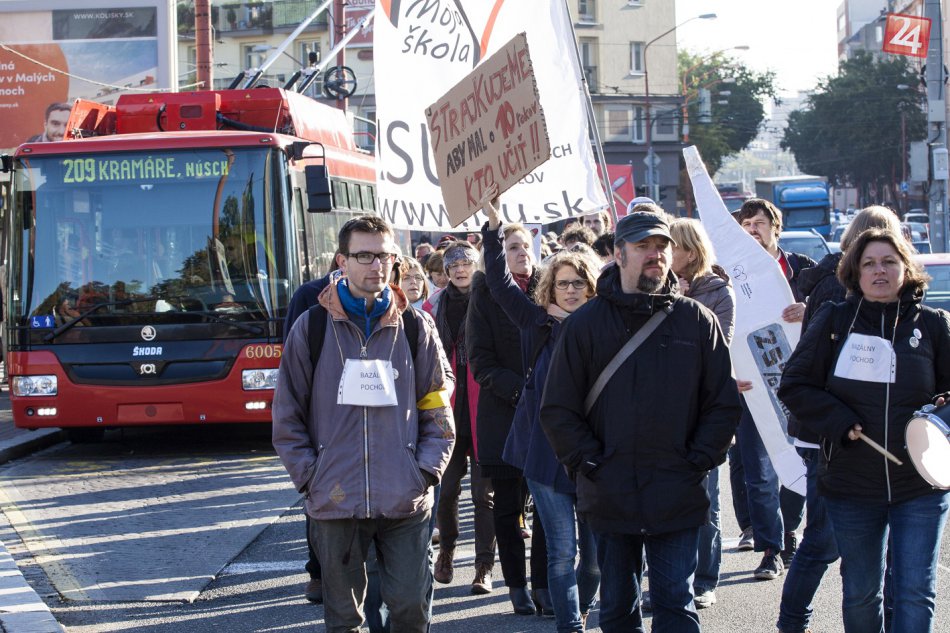 Galéria k článku Učiteľský protest: Pred ministerstvom financií žiadali viac peňazí do školstva