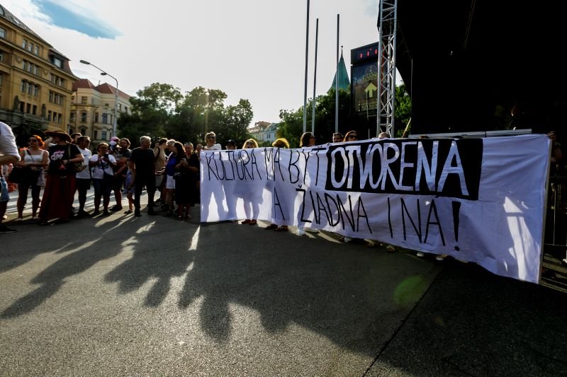 Galéria k článku FOTO: V Bratislave proti krokom ministerstva kultúry protestovali tisíce ľudí