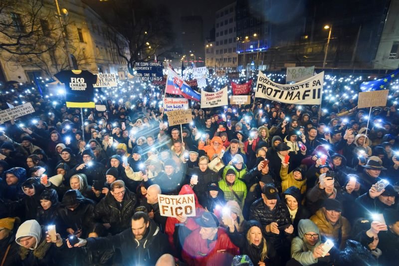 Galéria k článku Protesty naberajú na účasti: Do ulíc vyšli TISÍCE ľudí, demonštrácie boli v 23 mestách