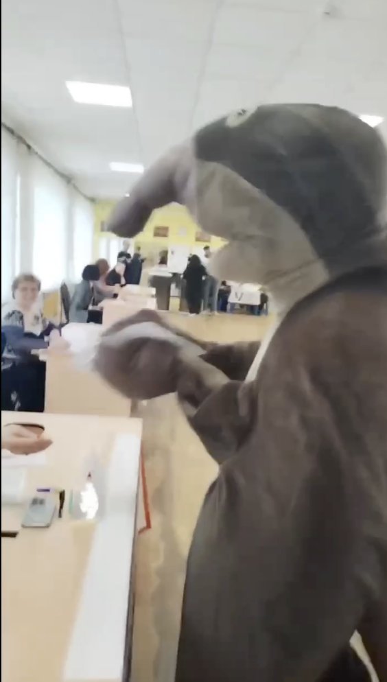 Galéria k článku Kôň a aj trojhlavý DRAK: Rusi chodia k volebným urnám v BIZARNÝCH kostýmoch, FOTO