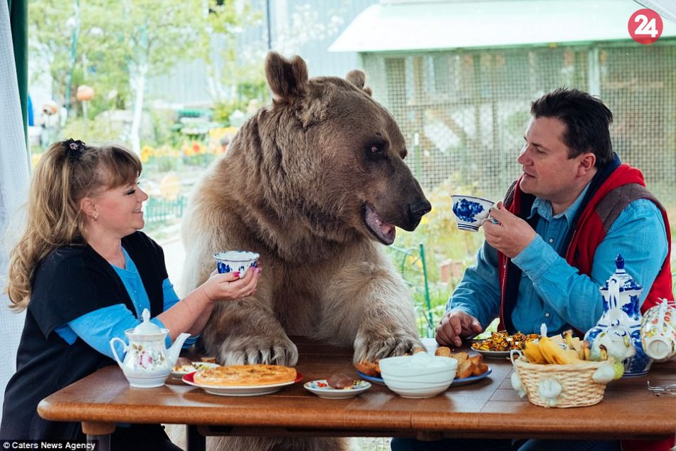 Galéria k článku KURIOZITA DŇA: Pár si adoptoval medveďa. Jedáva s nimi za jedným stolom!, VIDEO