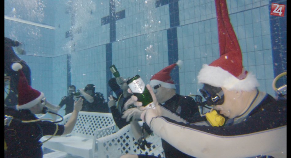 Galéria k článku Potápači v Spišskej dali zbohom starému roku: Šampusom si pripíjali pod vodou!