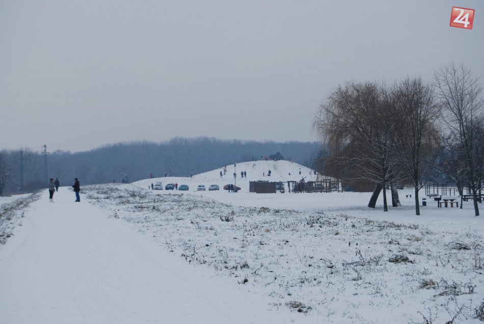 Galéria k článku Snehová nádielka v Nových Zámkoch: Jeden z mála kopčekov je už takmer zodratý :) FOTO