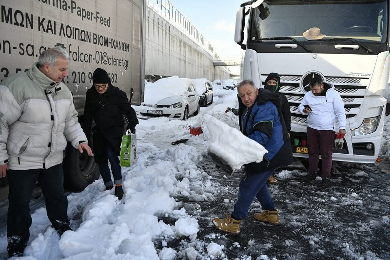 Galéria k článku Nočná mora Grékov a Turkov: Pre silné sneženie strávili noc v autách tisícky ľudí!