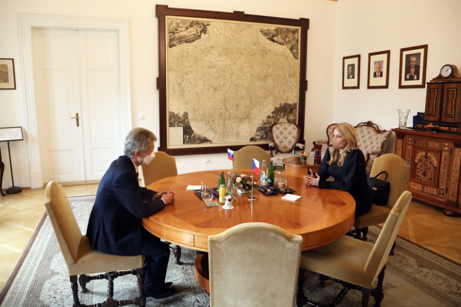 Na snímke prezidentka SR Zuzana Čaputová a predseda Senátu Parlamentu ČR Miloš Vystrčil počas stretnutia.