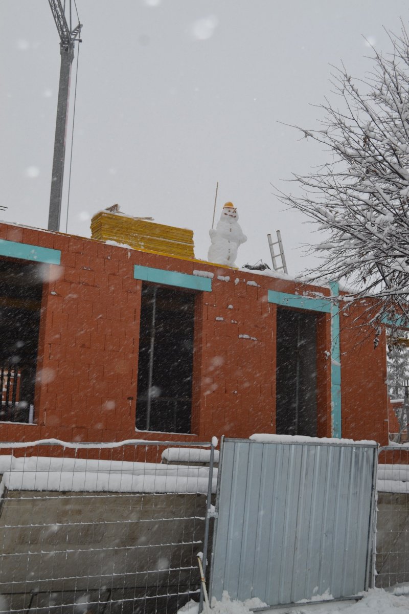 Galéria k článku V Spišskej Belej majú silnú kreativitu: Robotníci si na stavbe postavili SNEHULIAKA