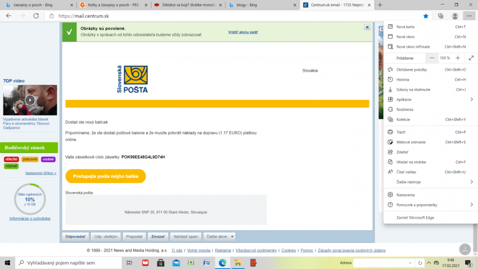 Galéria k článku Prišiel vám TAKÝTO email? Nenechajte sa nachytať, varuje Slovenská pošta