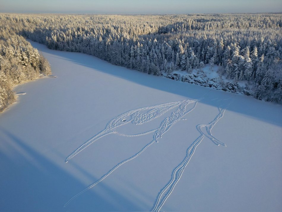Galéria Umelec vytvára v snehu nádherné obrazy