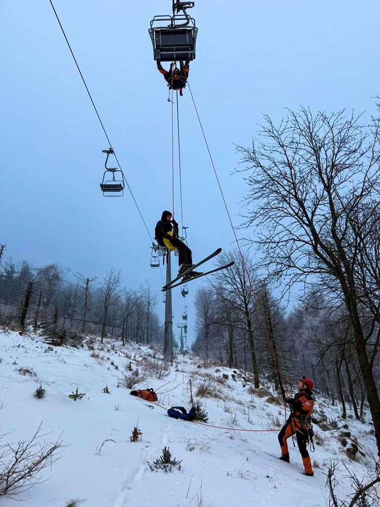 Galéria k článku V Česku sa ZASEKLA lanovka: DESIATKY bezmocných lyžiarov! Dole ich museli dostať HASIČI