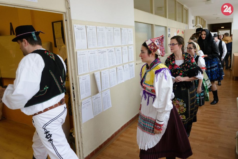 Galéria k článku Slovenské tradície žijú aj v Komárne: K volebnej urne prišli v krojoch, FOTO