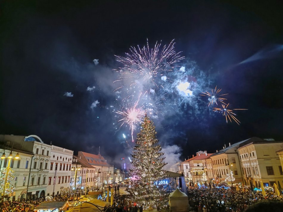 Galéria k článku Krajské mesto vítalo rok 2024 OHŇOSTROJOM: Pyromuzikálna šou zaplnila námestie, VIDEO a FOTO
