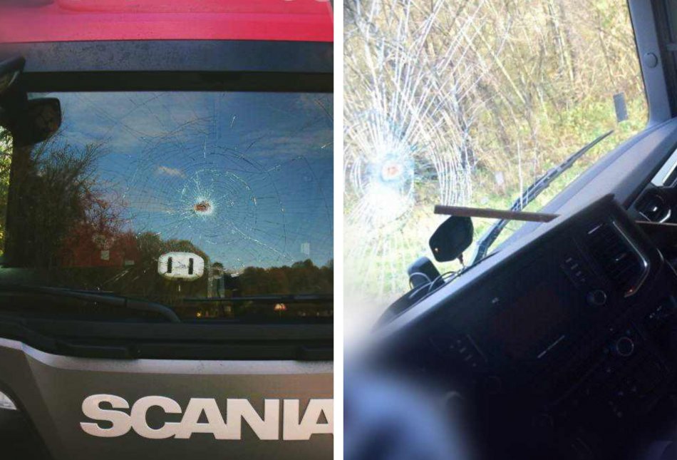 Galéria k článku HOROROVÝ zážitok na ceste: Čelné sklo kamióna PRERAZILA kovová tyč, FOTO